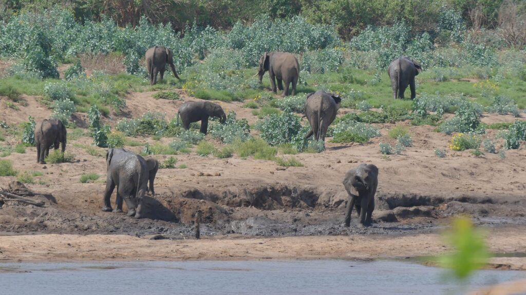 Elefanten durchqueren den Limpopo und damit die Grenze von Südafrika nach Botswana