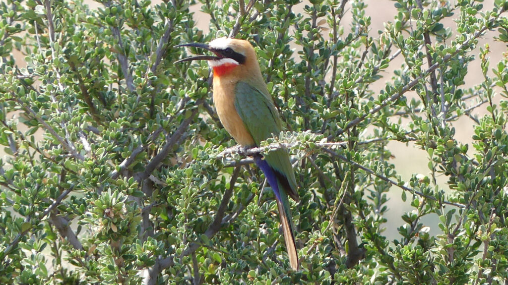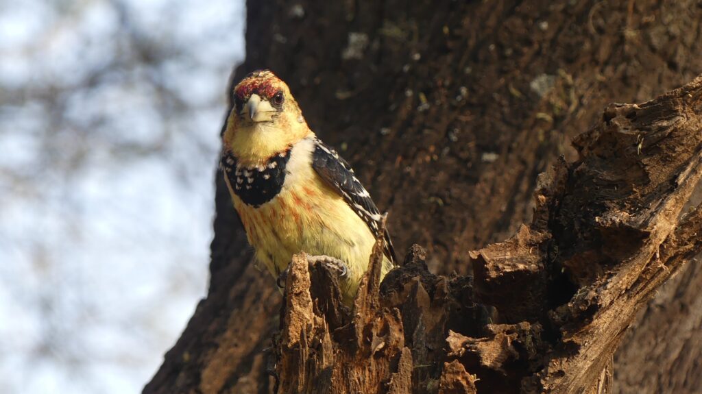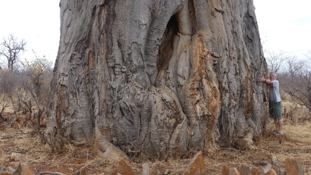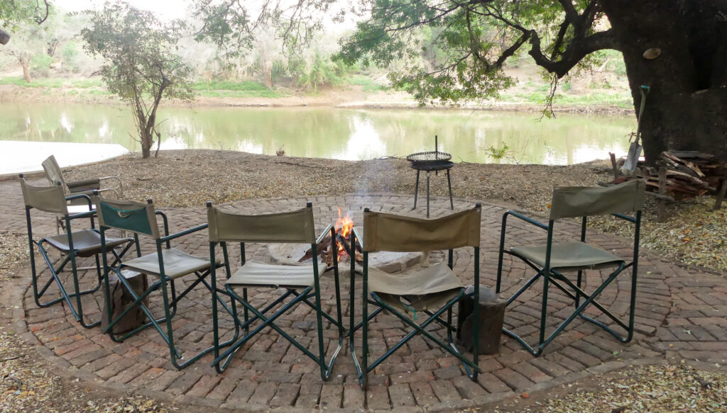 Our own game drive takes us through beautiful landscapes of hills and river scenery. However, we’re waiting for the rainy season; all the bushes are dry and leafless. Despite the destruction, there must be plenty of elephants around, but it’s as if they’ve all hidden away. Apparently, they always do when it’s overcast and cool, just like today at 24 degrees.