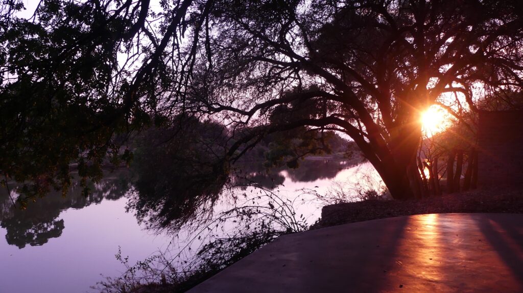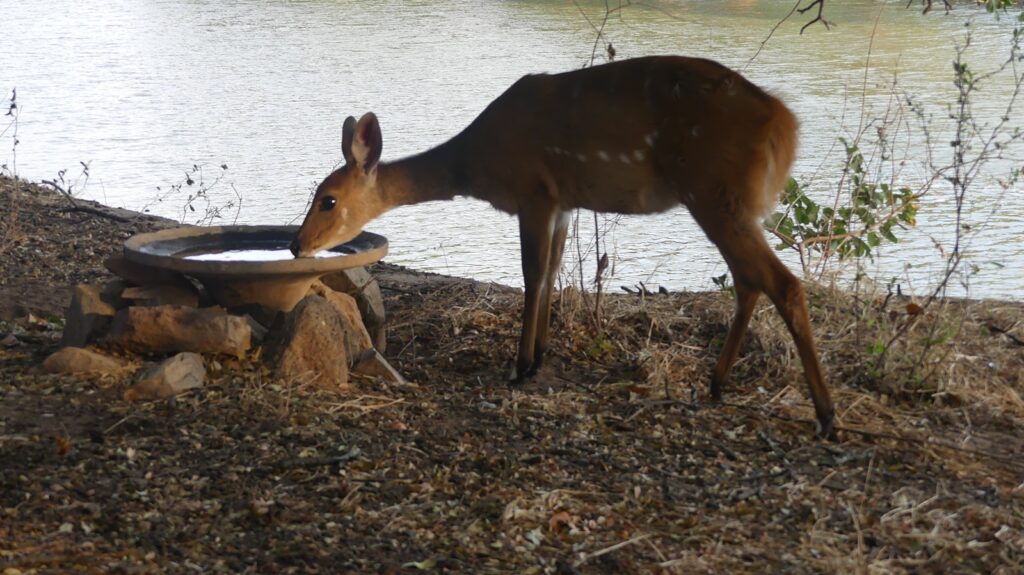 Wir fahren den Limpopo ein Stück aufwärts und übernachten im Limpopo River Camp. Ein sehr, sehr netter alter Mann, der uns aber auf den Boden der afrikanischen Realitäten zurückholt. Er hat vor sich den Preis für ein Chalet, aber nicht für drei Chalets für sechs Leute. Und weil das Kreditkartenterminal so wenig funktioniert wie die Grundrechenarten bei der humanen Intelligenz, müssen wir bar bezahlen. Das eine-Million-Dollar Problem: Die einen haben genug botswanische Pula, die anderen zu viele südafrikanische Rand und die dritten nur noch US-Dollar. Wir rechnen selbst und geben ihm die richtigen Beträge. Er glaubt uns einfach und nimmt seine einzigen Gäste auf – in drei Rondavells mit Blick über den Limpopo auf Südafrika. Unser eigener Game Drive führt zwar durch eine herrliche Landschaft mit Hügeln und Flußlandschaft. Aber hier wartet man auf die Regenzeit, alle Büsche sind trocken, ohne Laub. So zerstört wie Büsche und Bäume sind, muss es viele Elefanten geben. Aber es ist wie verhext, alle haben sich versteckt. Das tun sie angeblich immer, wenn es stark bewölkt und kühl ist. So wie heute: 24 Grad. Da bleiben uns wenigstens die Vögel.
