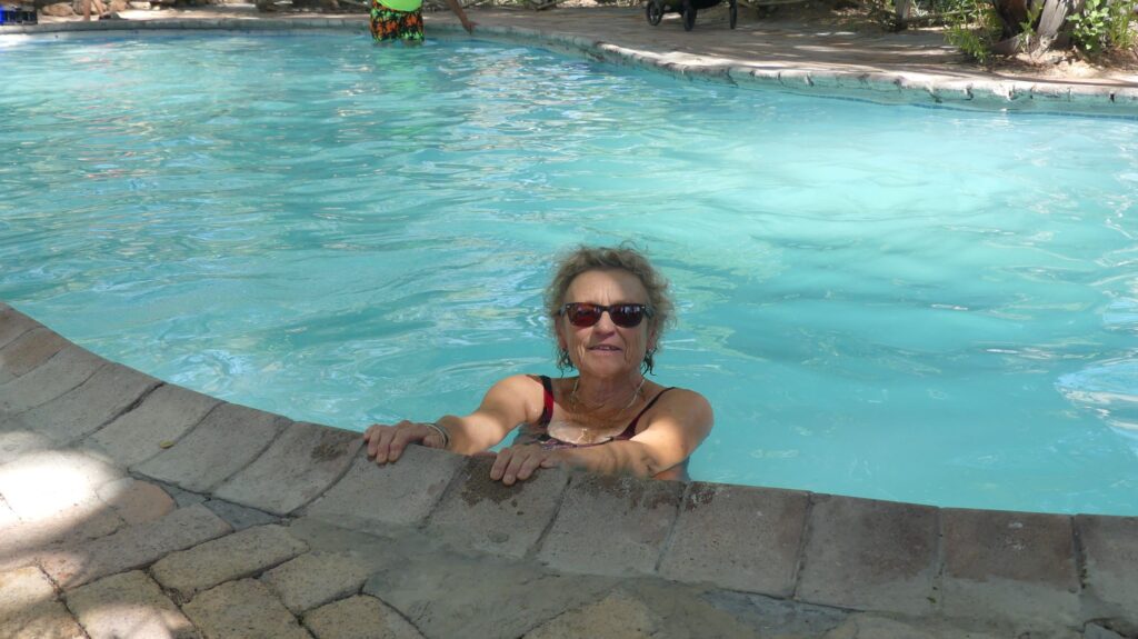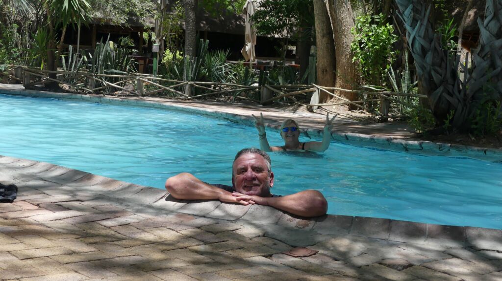 Die letzten Tage waren herausfordernd und anstrengend. Jetzt genießen wir bei 34 Grad im Schatten eine wohlverdiente Erholung bei schmackhafter Küche, zuverlässigem WLAN und vor allem in dem erfrischenden Pool der Nata Lodge.