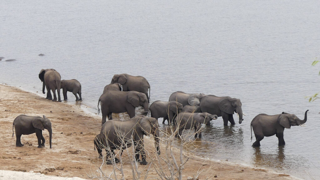 After yesterday’s little boat ride on the Chobe, today we’re cruising along the river with Toyo. This means: 5:30 AM wake-up, no breakfast, and arriving at the entrance to Chobe National Park by 6:30 AM. This park is particularly known for its large herds of elephants. Spanning over 10,000 km², it is said to be home to more than 120,000 elephants – the highest elephant density in all of Africa!