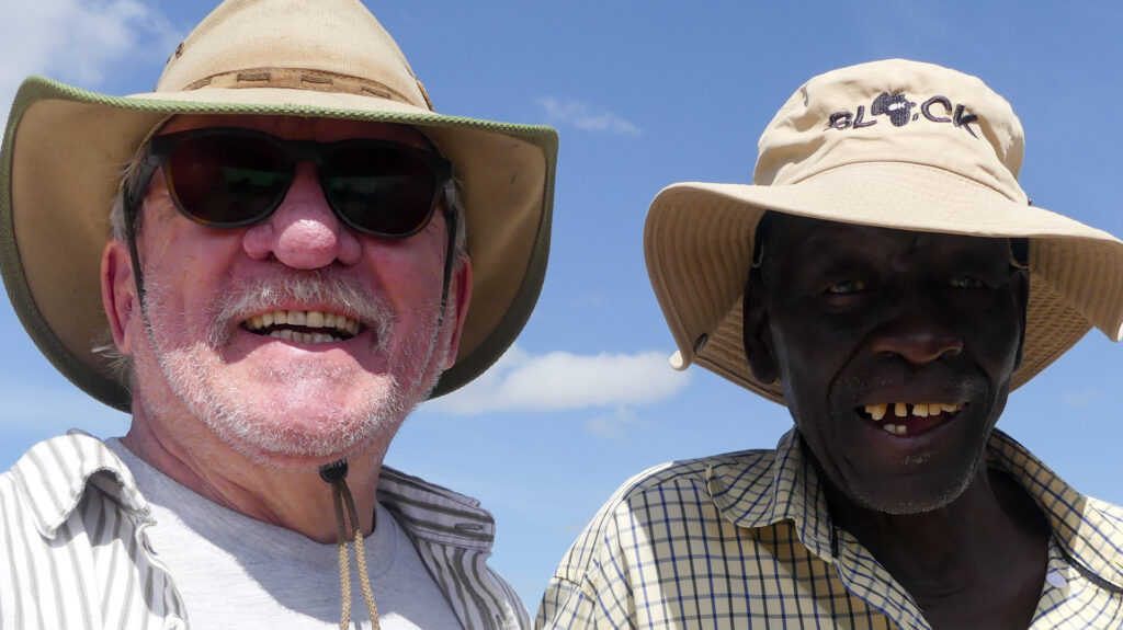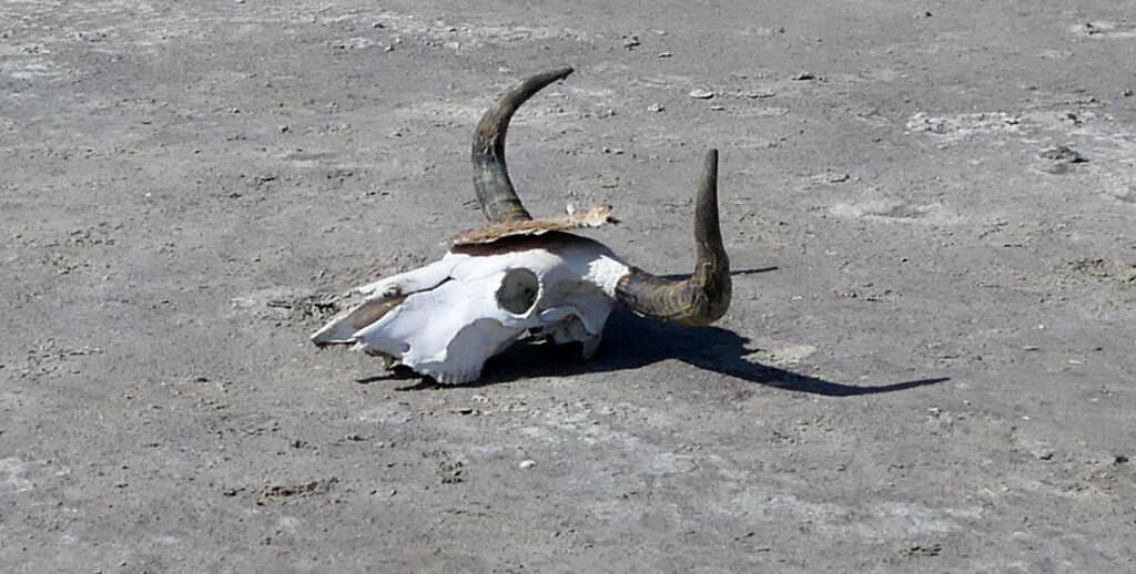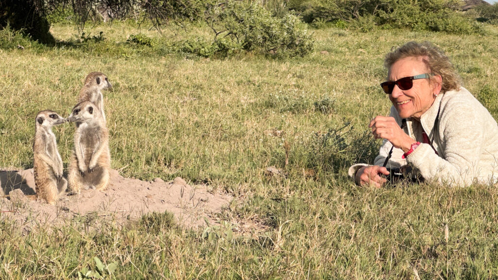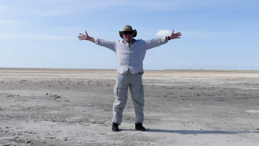 Im Makgadikgade-Nationalpark besuchen wir eine Erdmännchen-Kolonie mit dem Team vom Planet Baobab. Abfahrt gruselig früh: 05:30 Uhr. Die Fahrt geht über geflutete Wege. Gut, dass wir nicht mit Toyo unterwegs sind, sondern uns entspannt zurücklehnen können. Aber auch der Guide wagt es nicht, die Ntwetwe-Salzpfanne zu befahren. Auf der Oberfläche scheint sie nach den monatelangen Regenfällen inzwischen schon trocken, aber tatsächlich ist darunter so viel Wasser, dass jedes Auto sofort einsinken würde und verloren wäre. Salz, Savanne, Staub und Sonne – afrikanischer Charme eben.