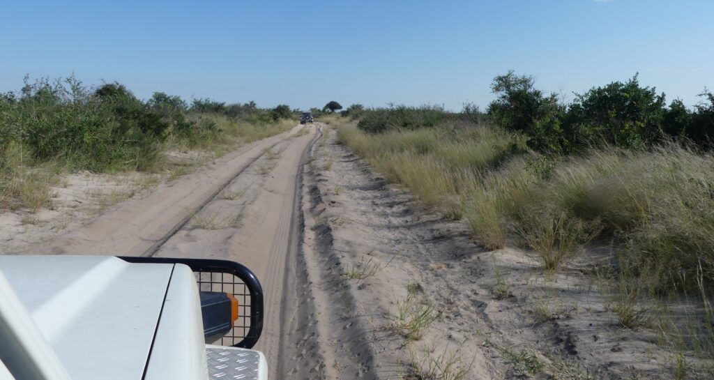 Our travel planning was from the start incredibly flexible, and now we grant it its third (or fourth?) update: We’re meeting a German development aid worker who only shrugs at our further planning: “Further into the Central Kalahari? No, no—that’s only for people who want nothing more than to drive all day in deep sand and occasionally shovel the car free.” This year the grass there is so tall that elephants can hide, and you might only see giraffe necks.