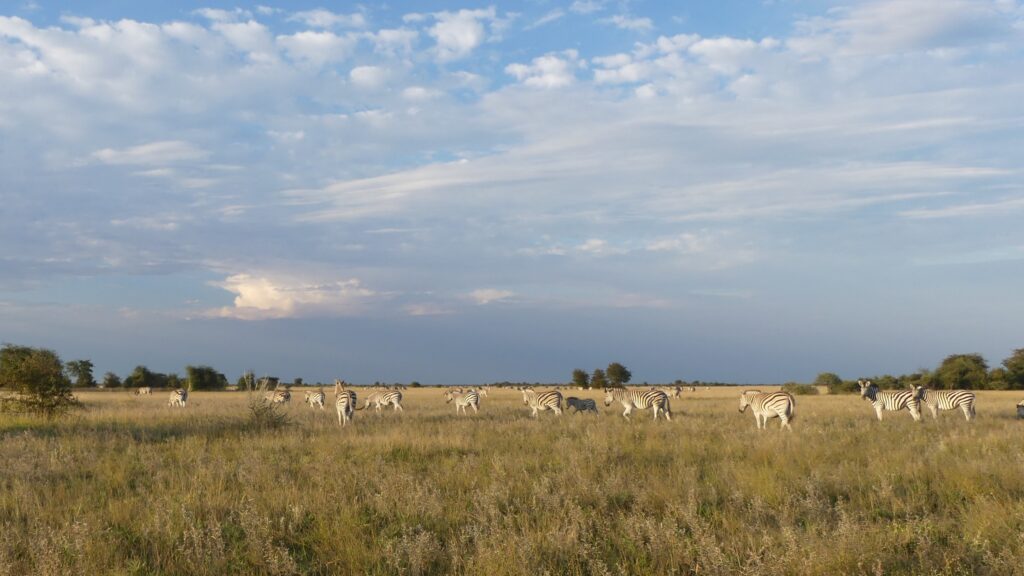 Also machen wir eine 180-Grad-Wendung und fahren in den nördlich gelegenen Nxai Pan Nationalpark. Hier werden die Jungtiere der Antilopen, Giraffen und der Tausenden Zebras geboren. Und wenn das in diesem Jahr reichlich vorhandene Regenwasser demnächst versiegt, ziehen die Herden nach Süden in die Grasgebiete der großen Makgadikgadi-Pfannen. Sie liegen tiefer, deshalb sind die Böden salzhaltiger und nährstoffreicher, ideal für die Aufzucht der Tierkinder. In der Trockenzeit ziehen die Herden dann weiter nach Westen an den Boteti-River, von dem dann nur noch einzelne Wassserlöcher übrig sein werden. Und wenn im November die Regenzeit einsetzt, schließt sich der Kreis der jährlichen Migration, die Tiere wandern dann wieder in der Nxai-Pfanne.