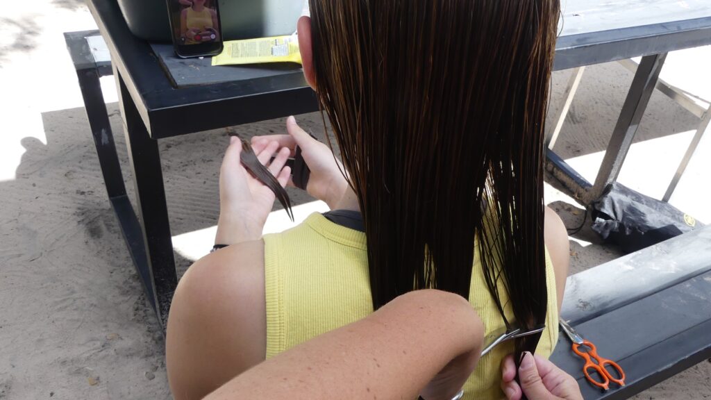 - In der Chobe Mopani Forest Lodge war das wichtigste Ereignis Maylas etwa 10 cm Haarlängenverlust. Eine schwere und im selben Moment schon bedauerte Entscheidung. Was sich aber schnell wieder beruhigte.