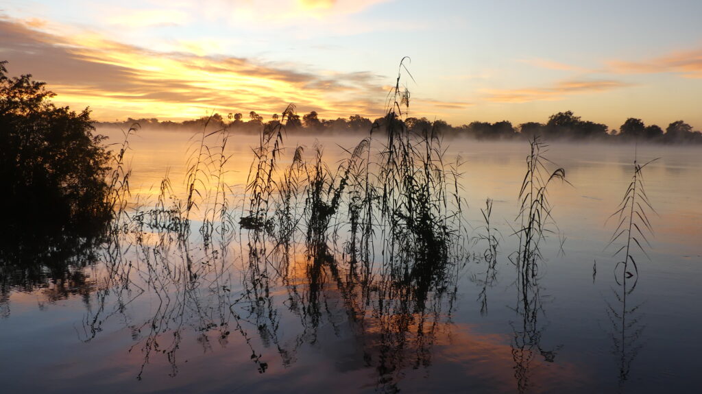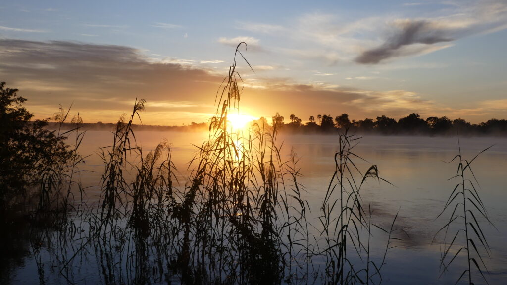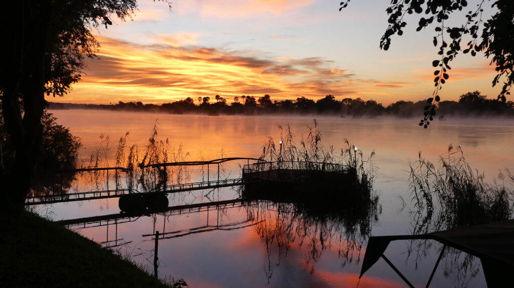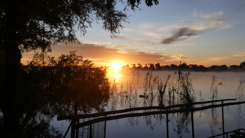 Ein neuer Tag. Ein letzter Tag. Nun auch für Lore und mich. Über dem Sambesi geht die Sonne auf, als wolle sie es uns heute besonders schwer machen, „Servus“ zu sagen.